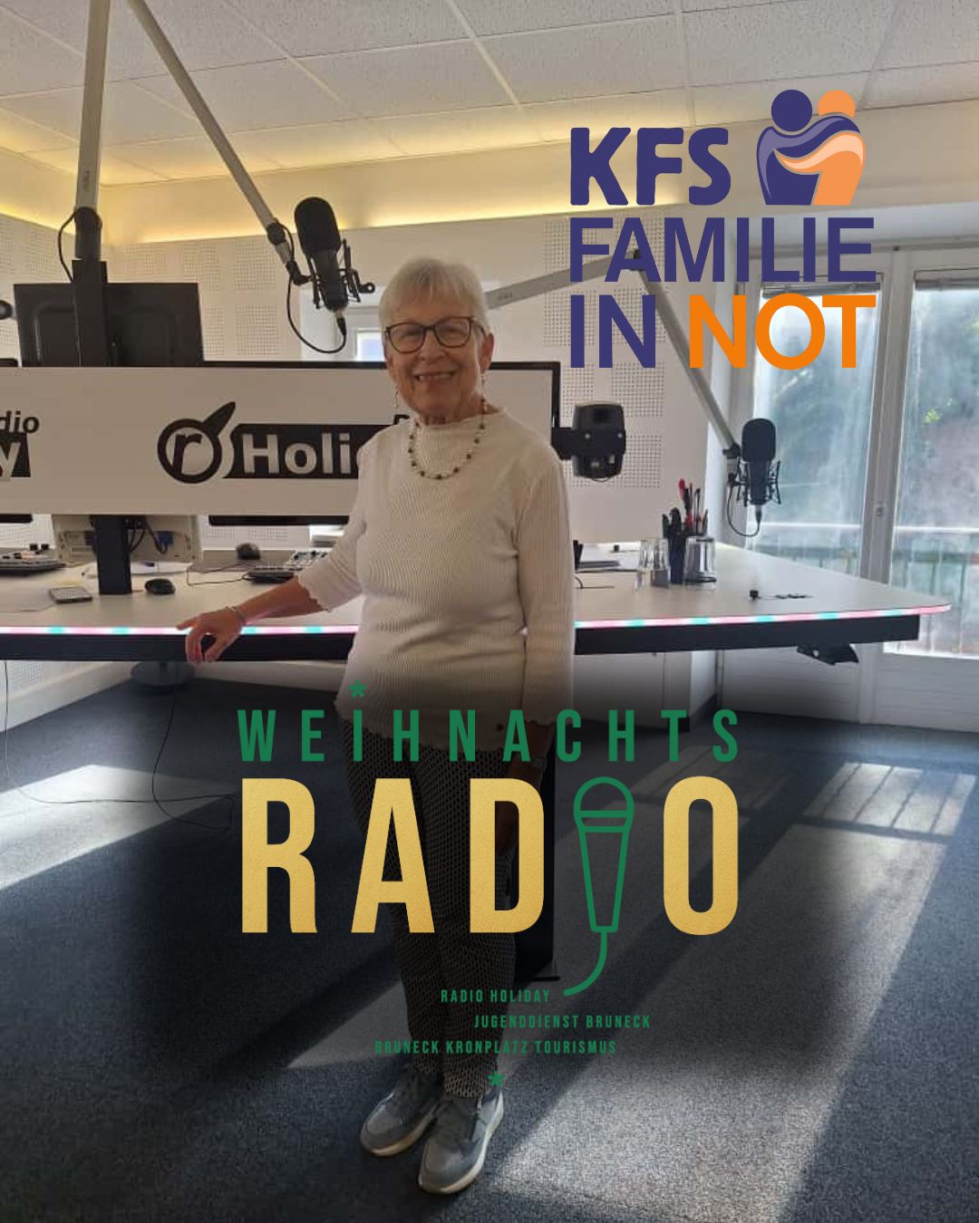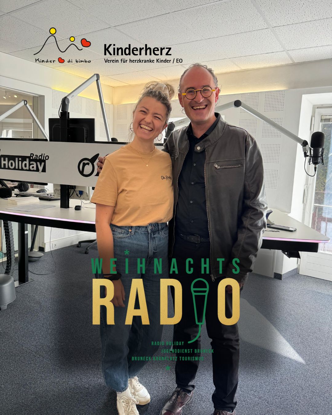 Am Freitag, 12. und Samstag 13. Dezember 2025 organisieren wir zusammen mit Bruneck Kronplatz Tourismus und dem Jugenddienst Bruneck bereits zum zweiten Mal das Weihnachtsradio – eine weihnachtliche Spendenaktion bei der wir (Radio Holiday) live vom Gilmplatz am Weihnachtsmarkt in Bruneck senden. Von 10 bis 21 Uhr werden wir dort an beiden Tagen in einem beheizten Container stationiert sein. Die erste Ausgabe im vergangenen Winter war ein voller Erfolg mit Spendeneinnahmen für die Kinderhilfe Regenbogen von über 10.000€.