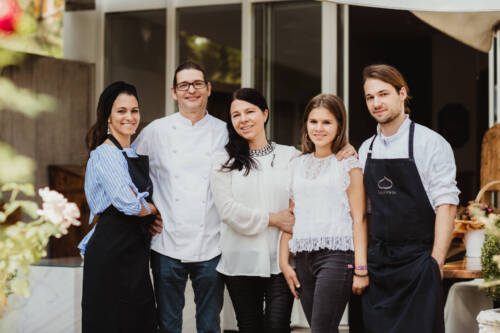 Die Familie Trafoier ist ein eingespieltes Team, in dem sich die Talente perfekt ergänzen. Sohn Kevin steht als Küchenchef am Herd und bringt mit Präzision wahre Köstlichkeiten auf den Teller. Die fantasievollen Desserts – darunter kreative Pralinen – stammen von Schwester Natalie, die in der Patisserie ihre Leidenschaft auslebt.