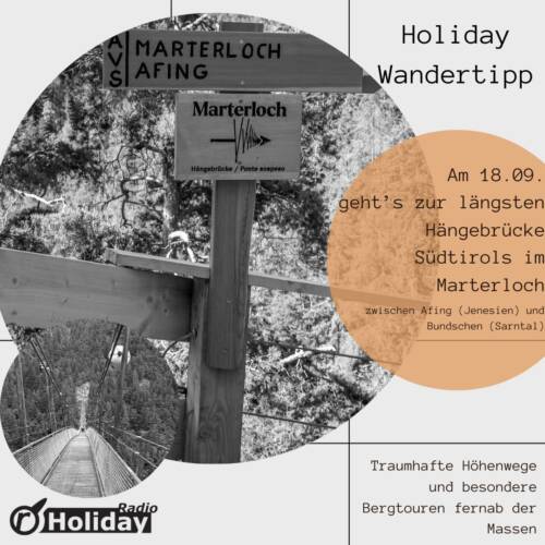 Die Woche neigt sich wieder langsam dem Ende zu und so ist es wieder Zeit für den Holiday-Wandertipp, für Ihre Freizeitgestaltung am Wochenende. Am 25.09. sind wir wieder mit der Bergführerin und Wanderleiterin Brigitte Passler unterwegs – und zwar zum Donnerschlag, vorbei am fast mystisch anmutenden Wengsee, in Mühlwald.